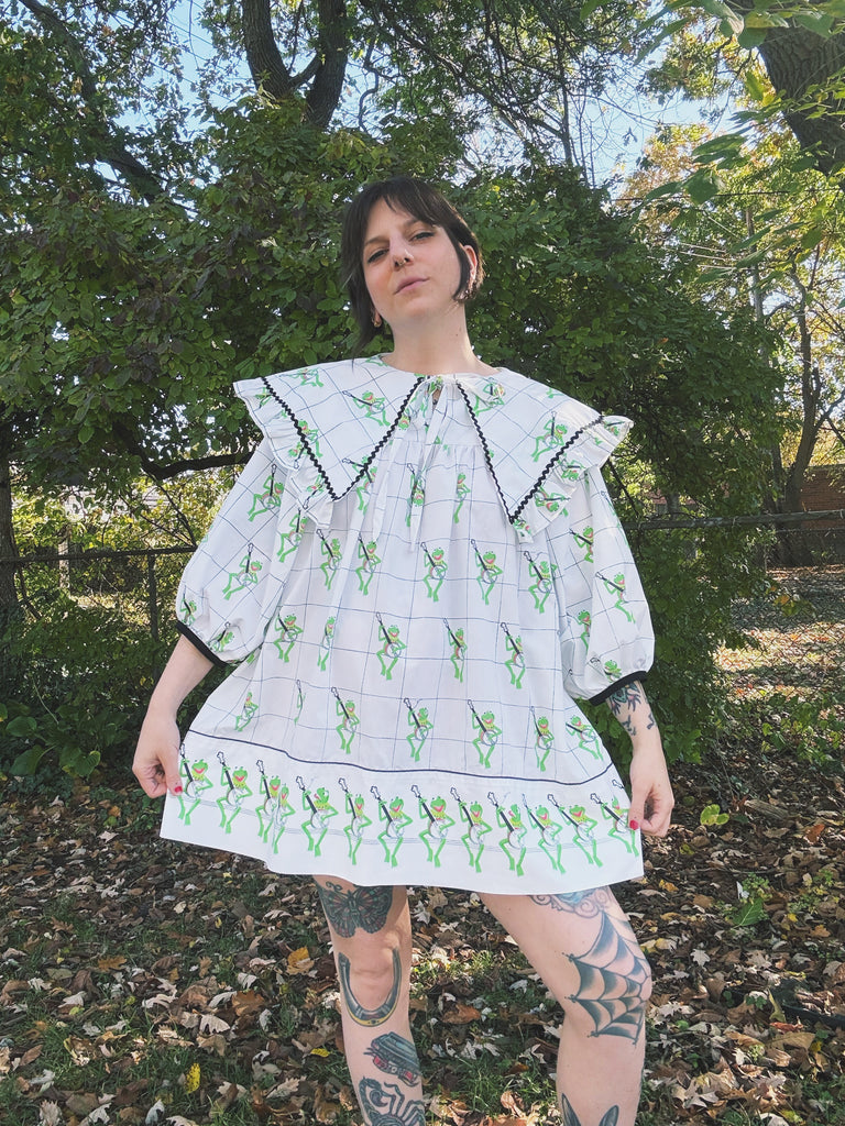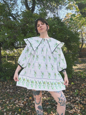 Franklin Jay dresses are made from vintage fabric so there may be suuuuuuper faint flaws such as tiny spots or pin holes! Will be very minor if any, I don’t use fabric in bad shape!