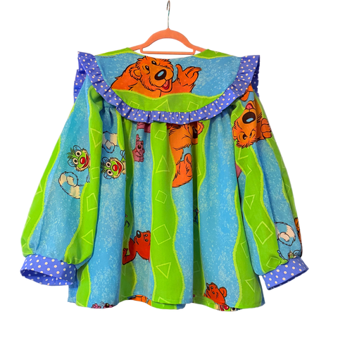 Franklin Jay blouses are made from vintage fabric so there may be suuuuuuper faint flaws such as tiny spots or pin holes! Will be very minor if any, I don’t use fabric in bad shape!