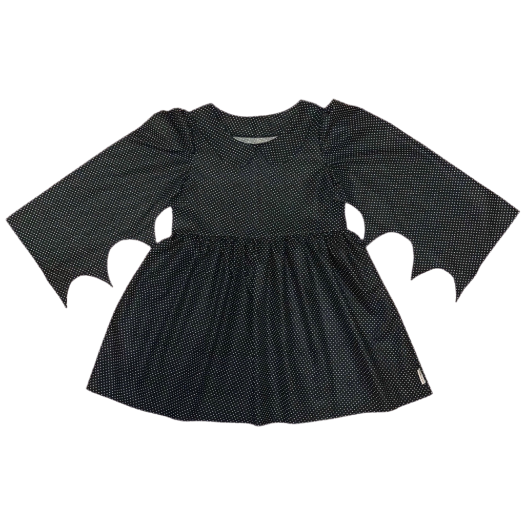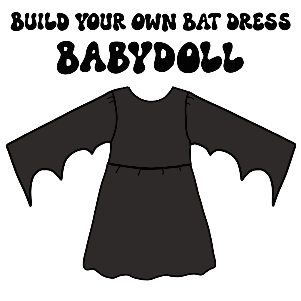 This babydoll style batwing dress is made to order and ranges from XS-4X. The babydoll style dress is meant to fit slightly oversized, has a bit of a higher waist and pulls over.