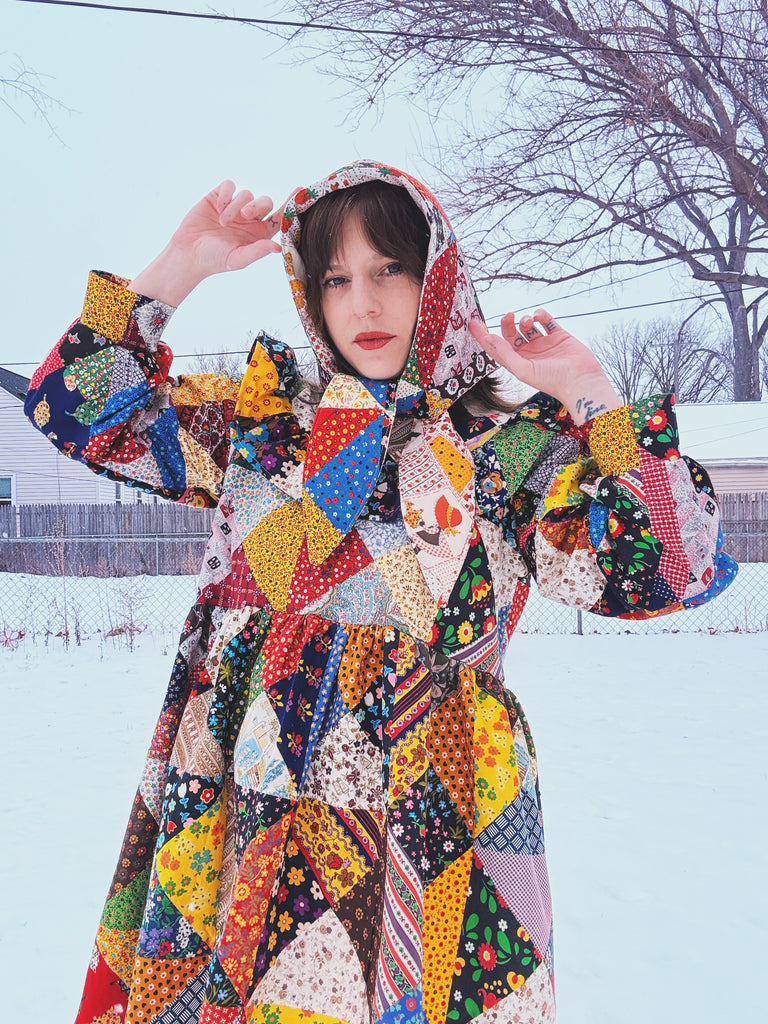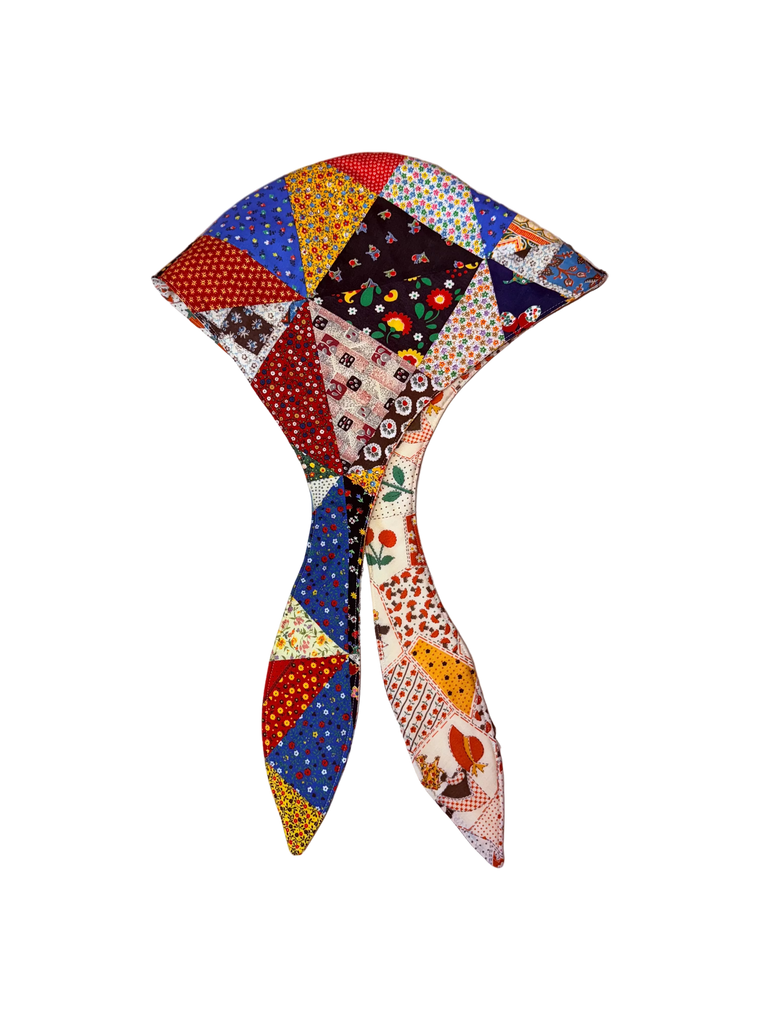 One of a kind hooded scarf made with super rare vintage real patchwork! Fully lined!