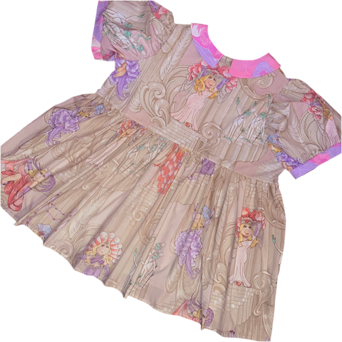 Dress pulls over and is meant to fit slightly oversized, recommended for 55” bust and lower.