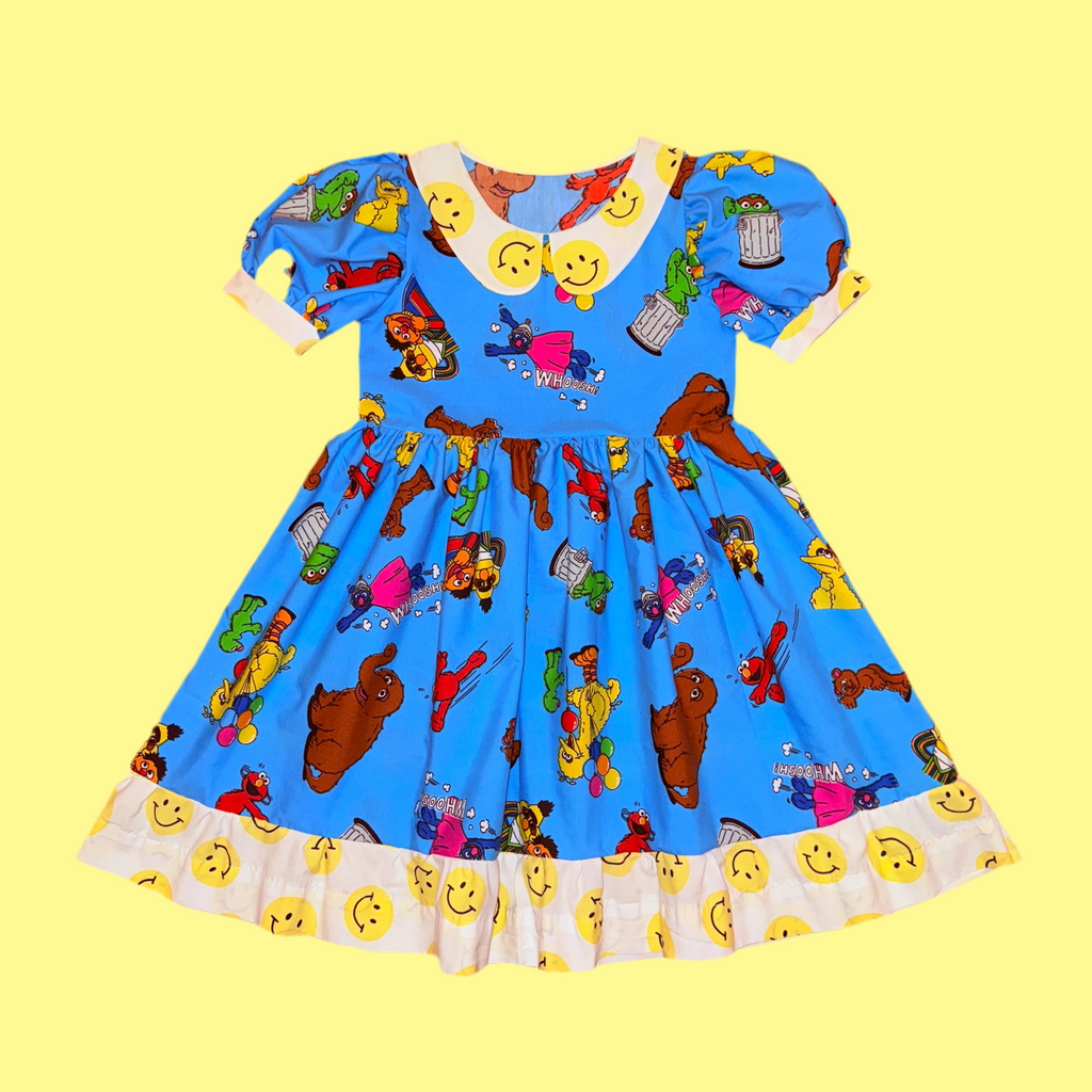 Dress pulls over and is meant to fit slightly oversized, recommended for 36” and lower.